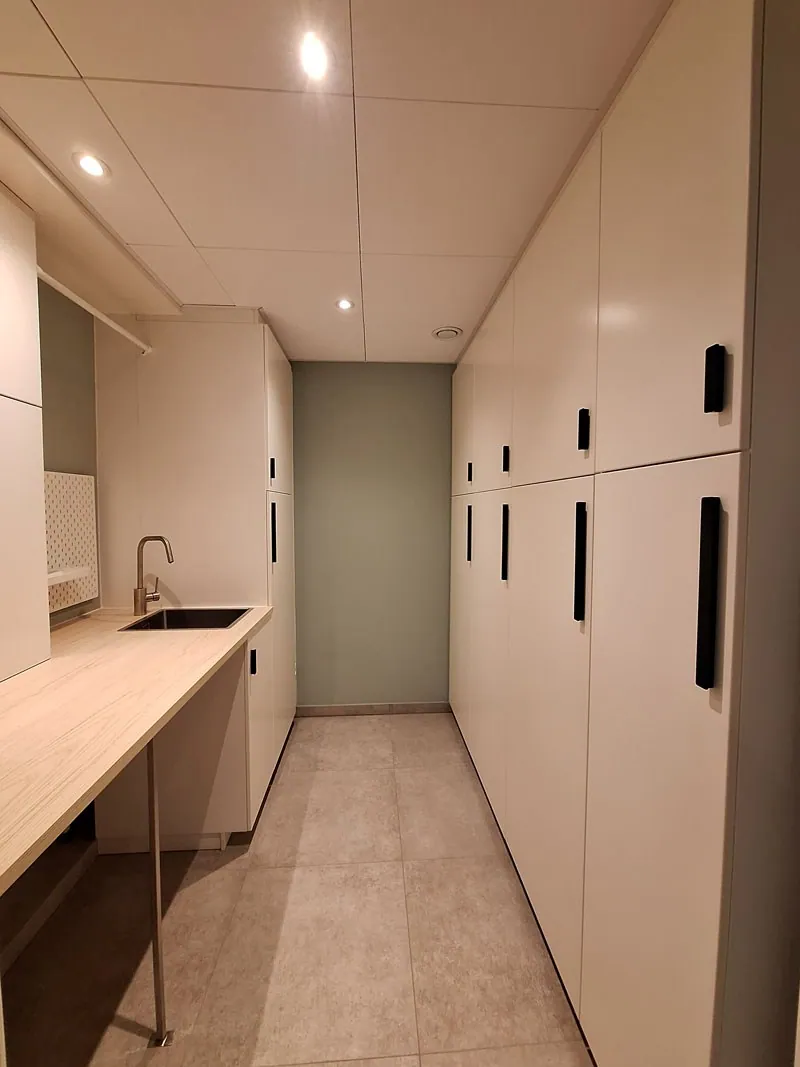 Dit pand bestaat uit twee ruime slaapkamers(met inbouwkasten), een living met open keuken, ingerichte badkamer met inloopdouche(en verwarmde douchewanden), apart toilet en wasplaats met inbouwkasten.