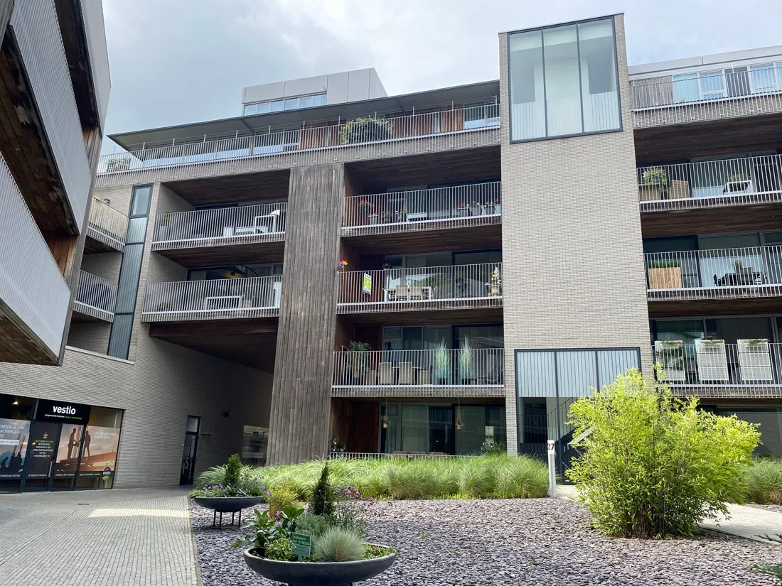 Het appartement heeft twee slaapkamers, een ingerichte keuken en badkamer, living, twee aparte toiletten (niet op de badkamer) en een berging. Er zijn twee terrassen met een prachtig zicht en voorzien van buitenbergingen. Eén van de terrassen kijkt o.m. uit op de patio van De Eenhoorn