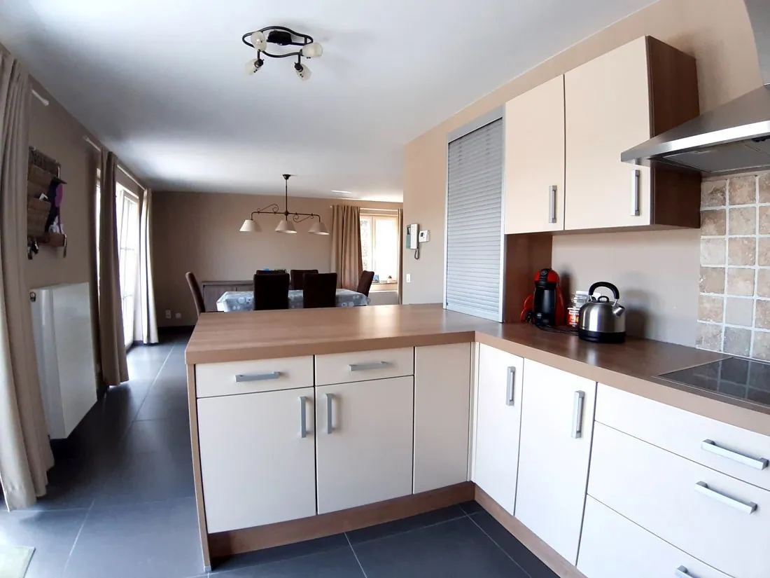 Op de 1ste verdieping zijn er een living, keuken, toilet, wasplaats, badkamer, 1 slaapkamer en een mooi ruim terras.