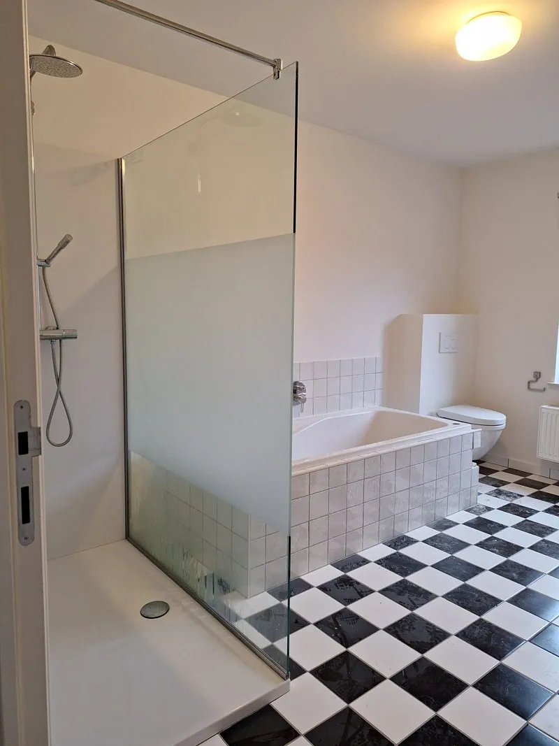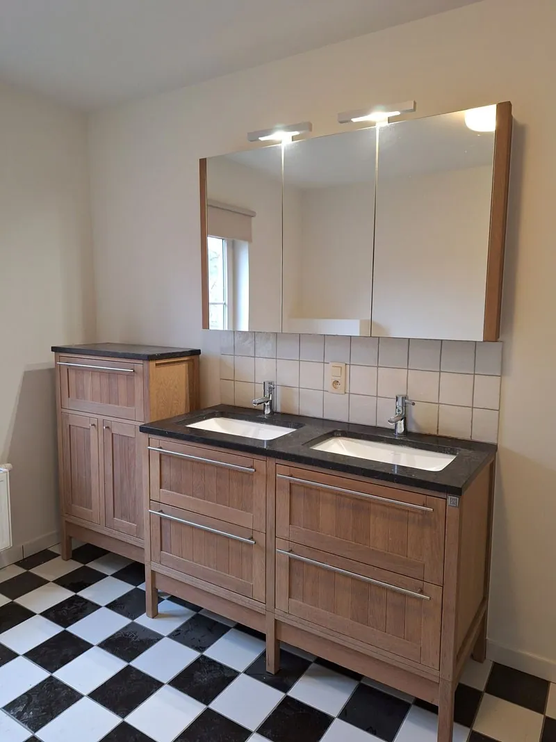 Op de verdieping bevinden zich drie slaapkamers (waarvan eentje met dressingroom) en een uitgeruste badkamer met ligbad en douche.