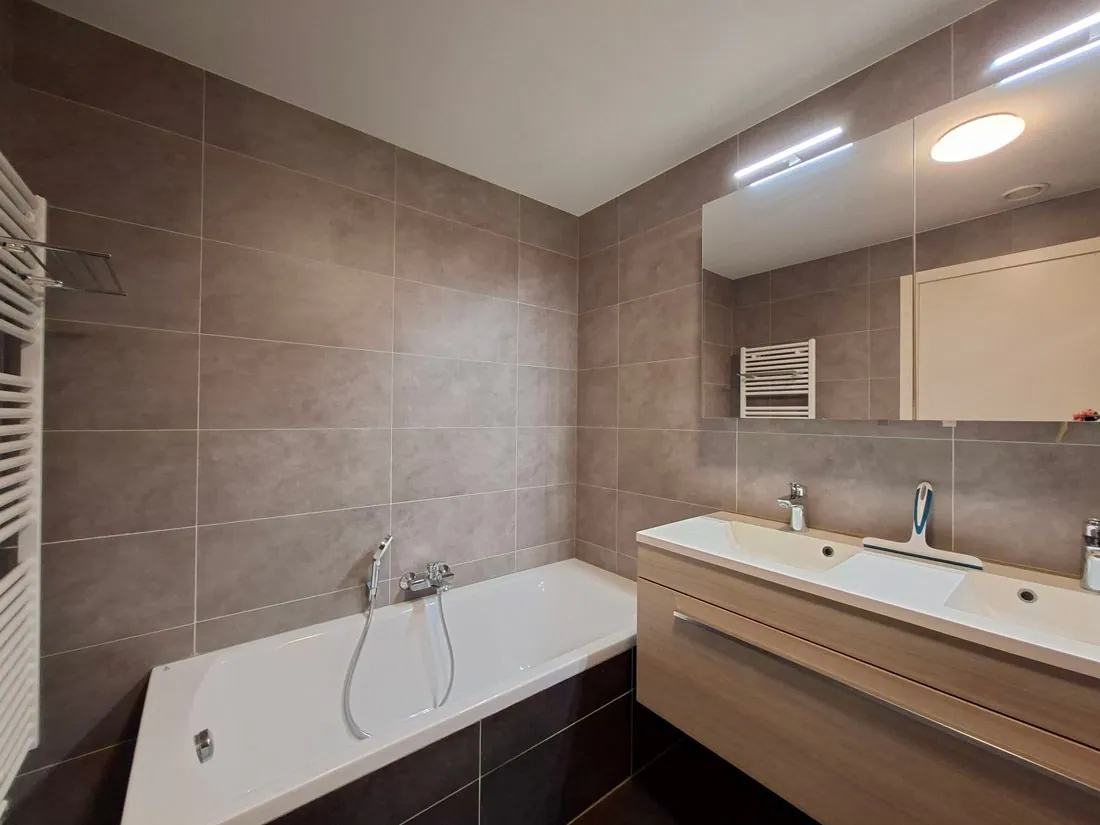 Het appartement heeft een bewoonbare oppervlakte van +/- 105m² (volgens EPC)en beschikt over een mooie leefruimte met een klassevolle afwerking, een volledig uitgeruste keuken en badkamer (zowel met douche als ligbad) en twee comfortabele slaapkamers. Grote raampartijen zorgen voor een aangename connectie met buiten.