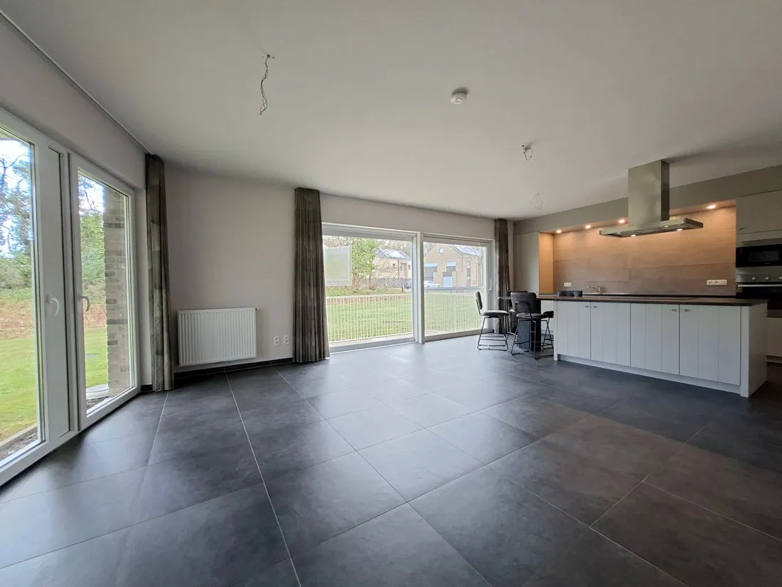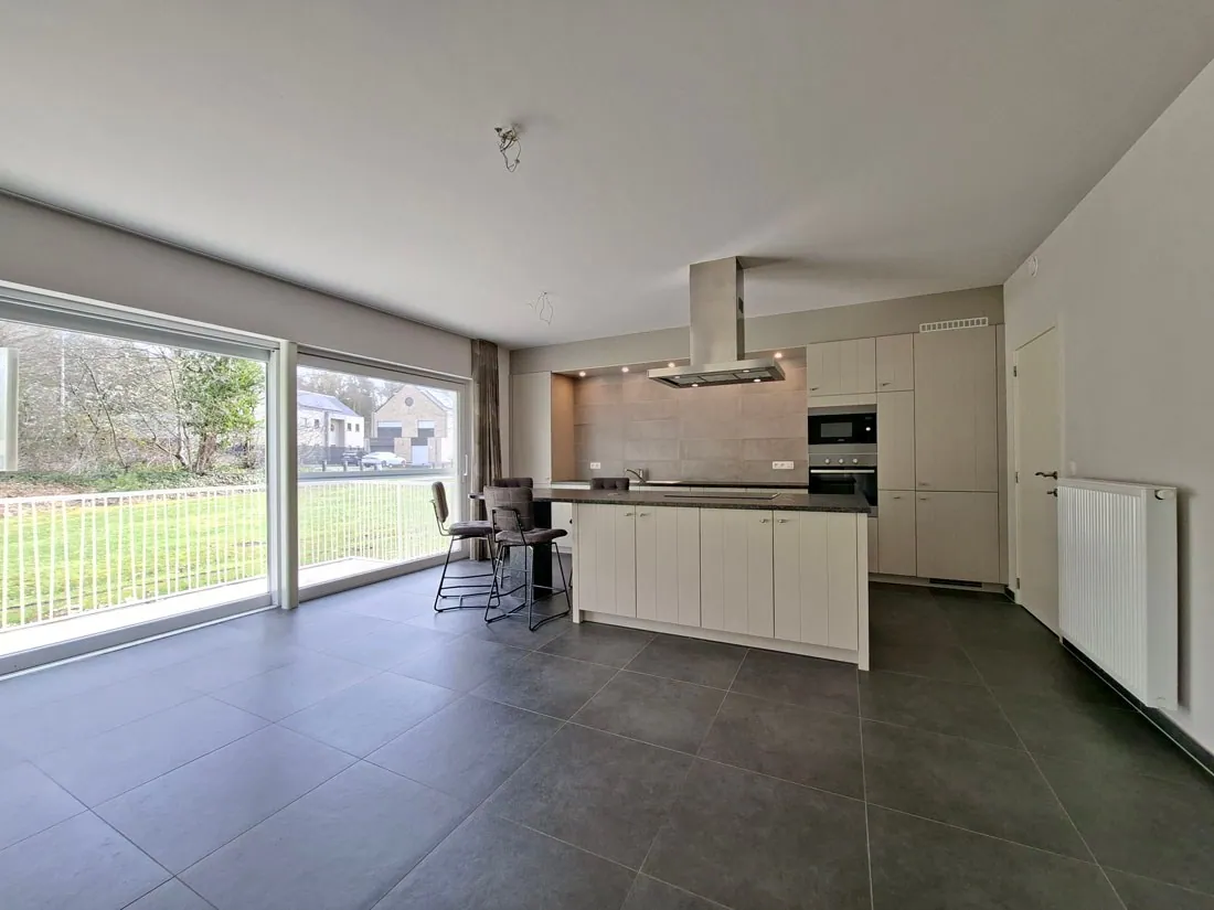 Via de leefruimte heeft u toegang tot het gezellige terras, waar u in alle rust kan genieten van de groene omgeving – een echte meerwaarde voor wie houdt van privacy en ontspanning.