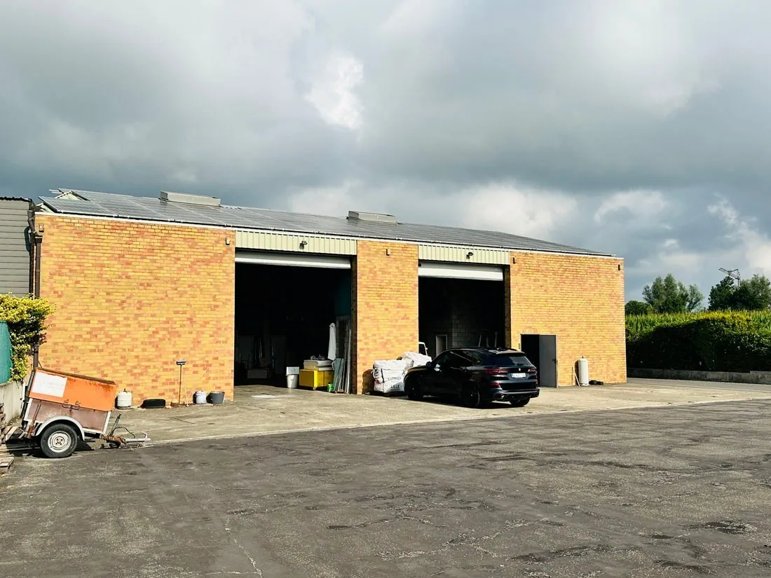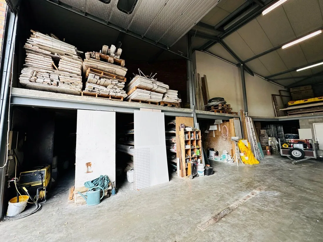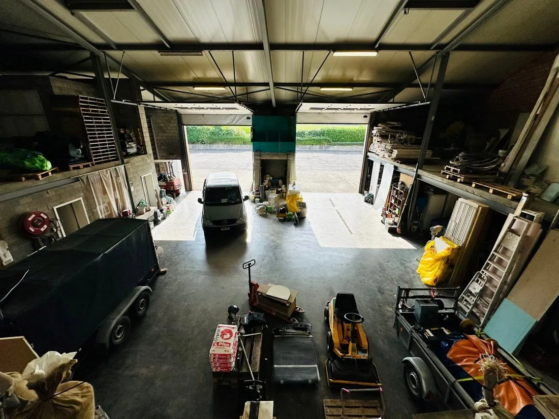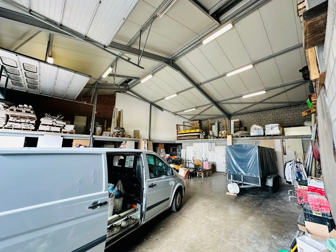 Dit vergund pand heeft maar liefst een oppervlakte van +/- 490m²(volgens EPC) en biedt verschillende mogelijkheden. Aan de achterzijde bevinden zich twee toegangspoorten met een hoogte van liefst 4,95 meter en een breedte van 4,55 meter. Het kan gebruikt worden voor logistieke doeleinden, een aannemer die nood heeft aan veel opslagruimte maar ook klanten moet ontvangen, andere professionele activiteiten,...