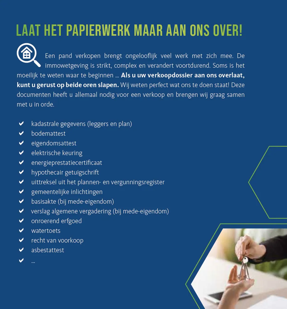 Hieronder vindt u een overzicht van alle documenten, attesten, keuringen en andere certificaten die vereist zijn voor de verkoop van een pand :