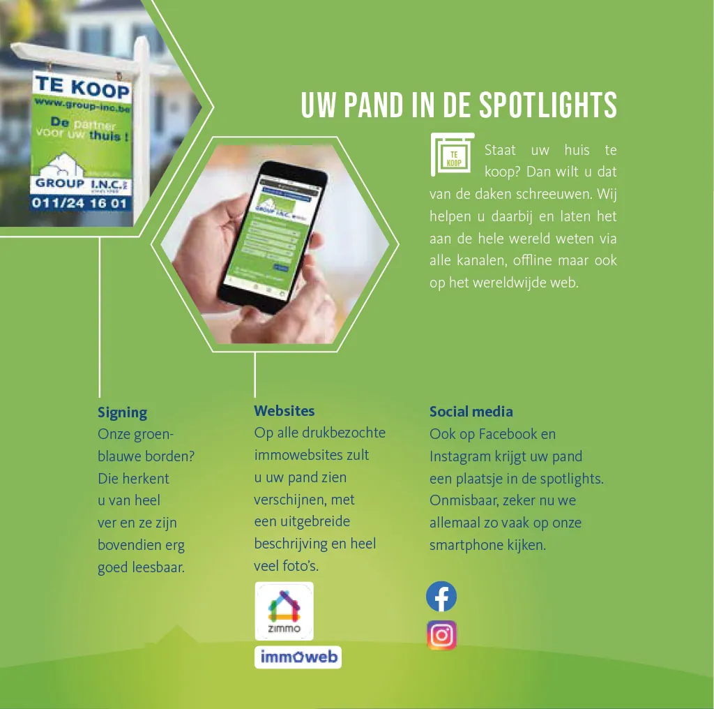 Uw pand geniet publiciteit op www.group-inc.be, www.immoweb.be, www.zimmo.be… met uitgebreide beschrijvingen en vele goede foto’s.